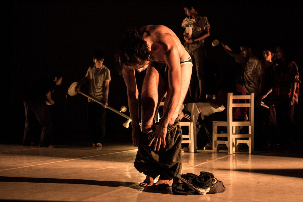 La Horda es un espectáculo coreográfico diseñado para ser disfrutado en familia, invitando a niñas, niños y adultos a pensar sus cuerpos de forma distinta. Un cúmulo de humanos intentan encontrar su lugar en el espacio, en medio de un río de afecciones, inercias y reacciones en cadena que dificultan la posibilidad de definir dónde termina lo individual y dónde comienza lo colectivo.